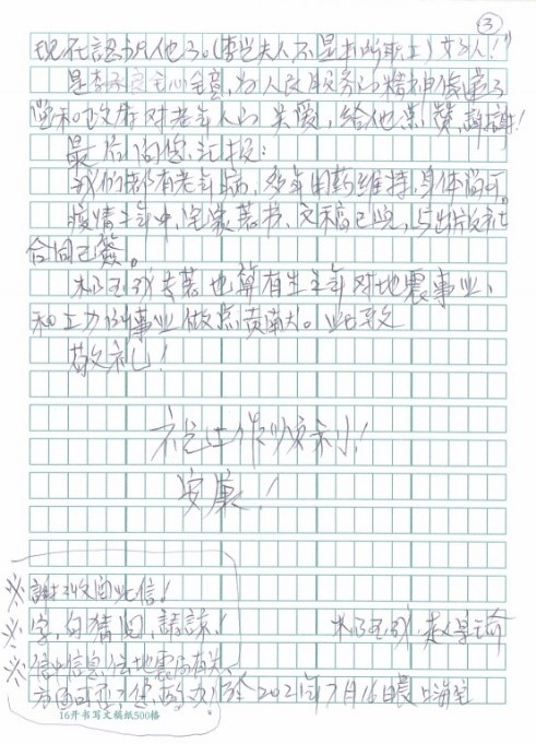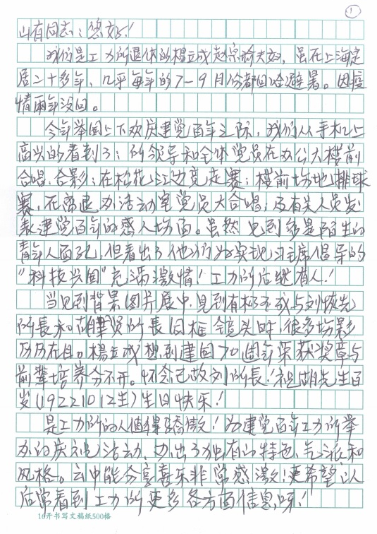 發布時間: 2021-08-20 點擊數量:3526“以人性化服務和溫情服務為宗旨,努力做到讓老同志方便、放心、滿意,感受到家人般的溫暖”,這是離退休辦公室的服務宗旨。近日,一封感謝信從遠在上海定居的老同志寄來,信里表達了對工力所在建黨百年之際取得的成績感到驕傲和自豪,重點感謝了離退辦同志對異地居住和就醫的老同志給予生活上和就醫方面的關心和幫助。他飽含感激之情地講述了幾件事,他說“我們講述幾件個人小事,但能說明工力所不單培養科技人才,為民辦事一般工作人員也是稱職的。”“全心全意為人民服務的精神傳遞了黨和政府對老年人的關愛”……老同志口中的小事都是我們為群眾服務的大事,我們要為群眾辦真事、真辦事。