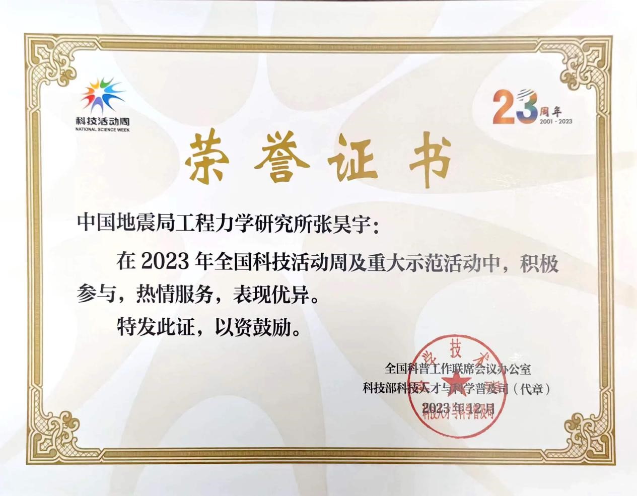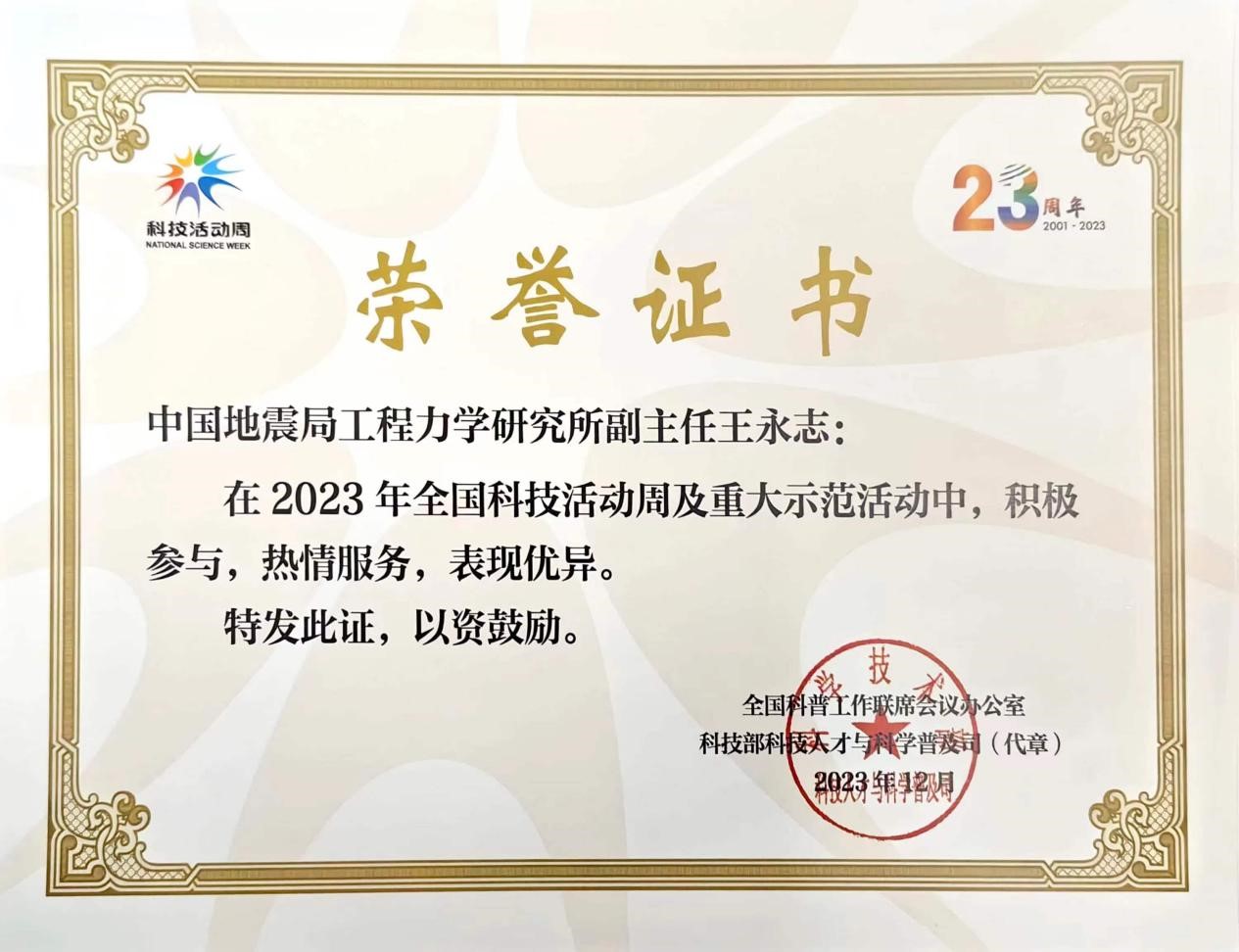 在2023年舉辦的全國科技活動周及重大示范活動中,我所積極參與表現突出,獲全國科普工作聯席會議辦公室表彰。我所科技發展部獲先進集體,王永志研究員、張昊宇副研究員獲先進個人。