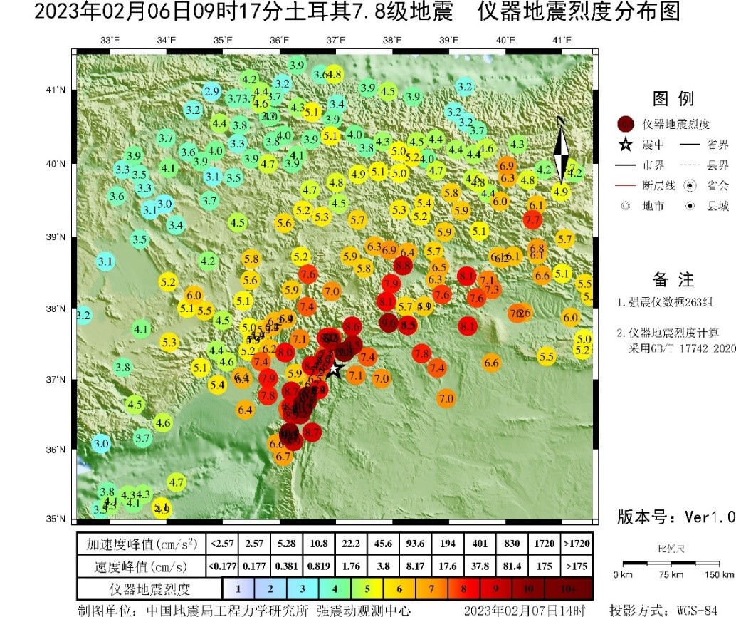 發布時間: 2023-02-08 點擊數量:4476據中國地震臺網正式測定:02月06日09時17分,在土耳其(北緯37.15度,東經36.95度)發生7.8級地震,震源深度20公里。