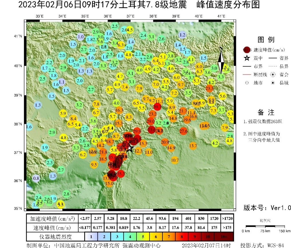應急產出:土耳其7.8級地震強震動觀測簡報(第1報)