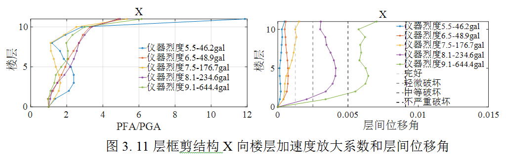 (3)本次地震記錄到的地震動卓越頻率范圍普遍較寬,PGV/PGA較大,對結(jié)構(gòu)的破壞力較強,造成了震中區(qū)磨西鎮(zhèn)的房屋破壞嚴(yán)重。