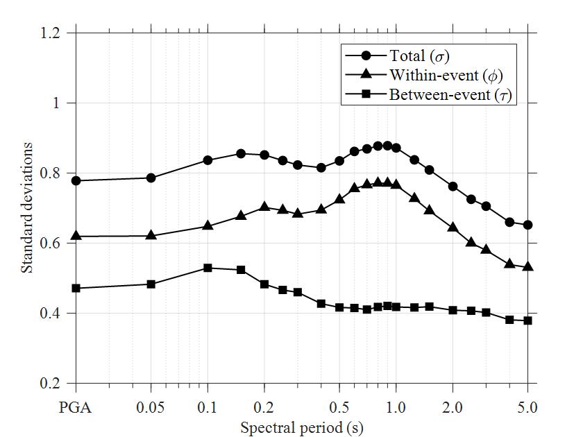 圖3 地震動預測模型的標準差分布圖