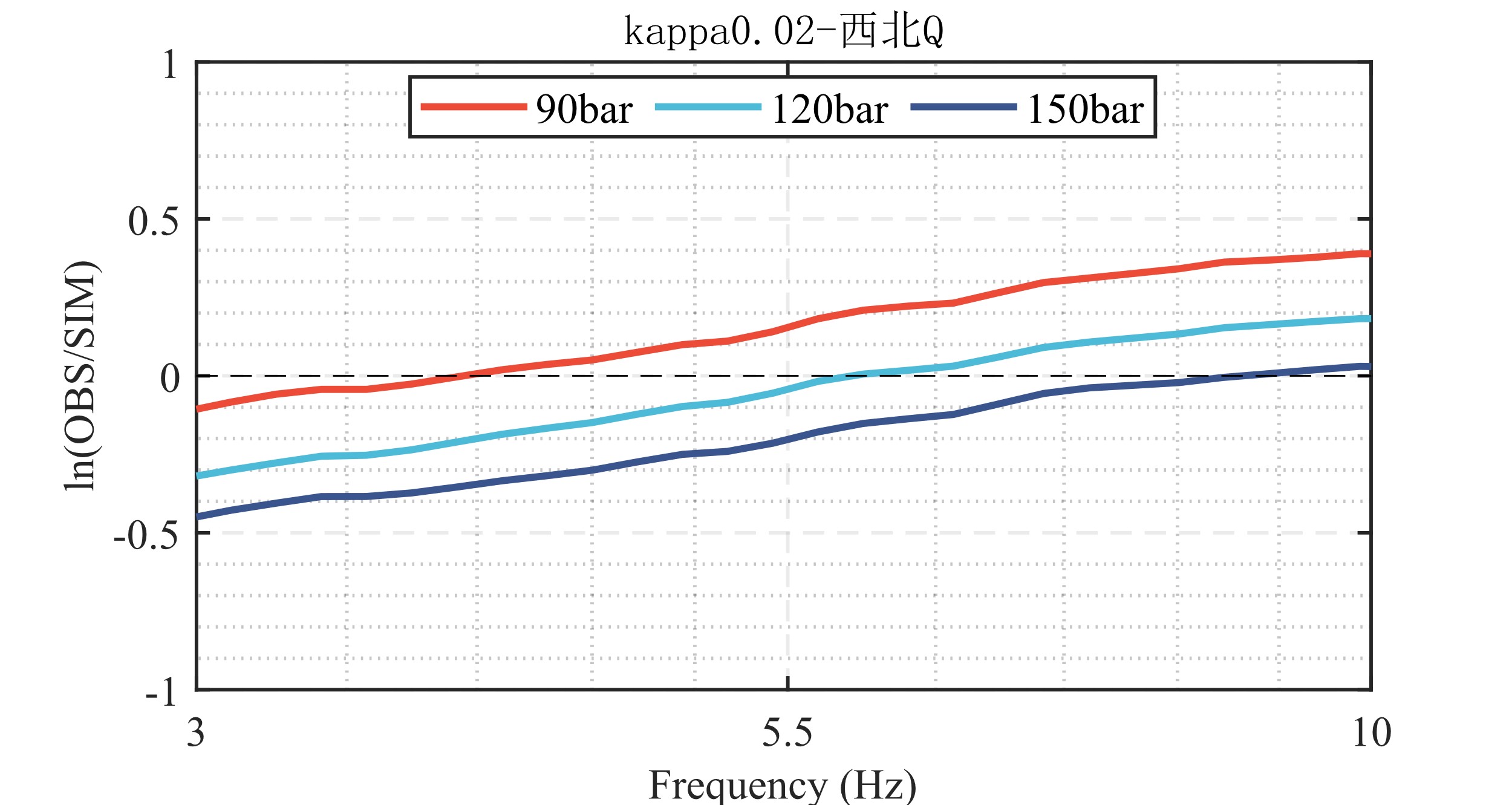 針對此次地震記錄呈現的高異常峰值,從震源機制分析其形成機理。以往研究和震害調查經驗表明,造成高異常峰值的主要原因包括:震源的高應力降及特殊的地下介質屬性?;谝酝芯抗ぷ?,我們分析了此次地震震源的應力降。初步結果表明,此次地震震源區對應的平均應力降為90-150 bar左右(見圖4),高于全球歷史地震平均應力降水平(30 bar),這與謝志南課題組前期估計蘆山主震逆沖型地震主破裂區平均應力降水平(90-150 bar)大致相當。因此,此次地震觀測到的高異常峰值現象,從震源的角度可以初步歸結為發震震源的高應力降。