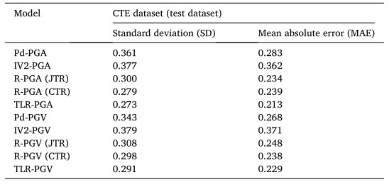 表1 對于相同的中國測試數據集,基于TLR-PGA模型、TLR-PGV模型和基線模型的預測結果