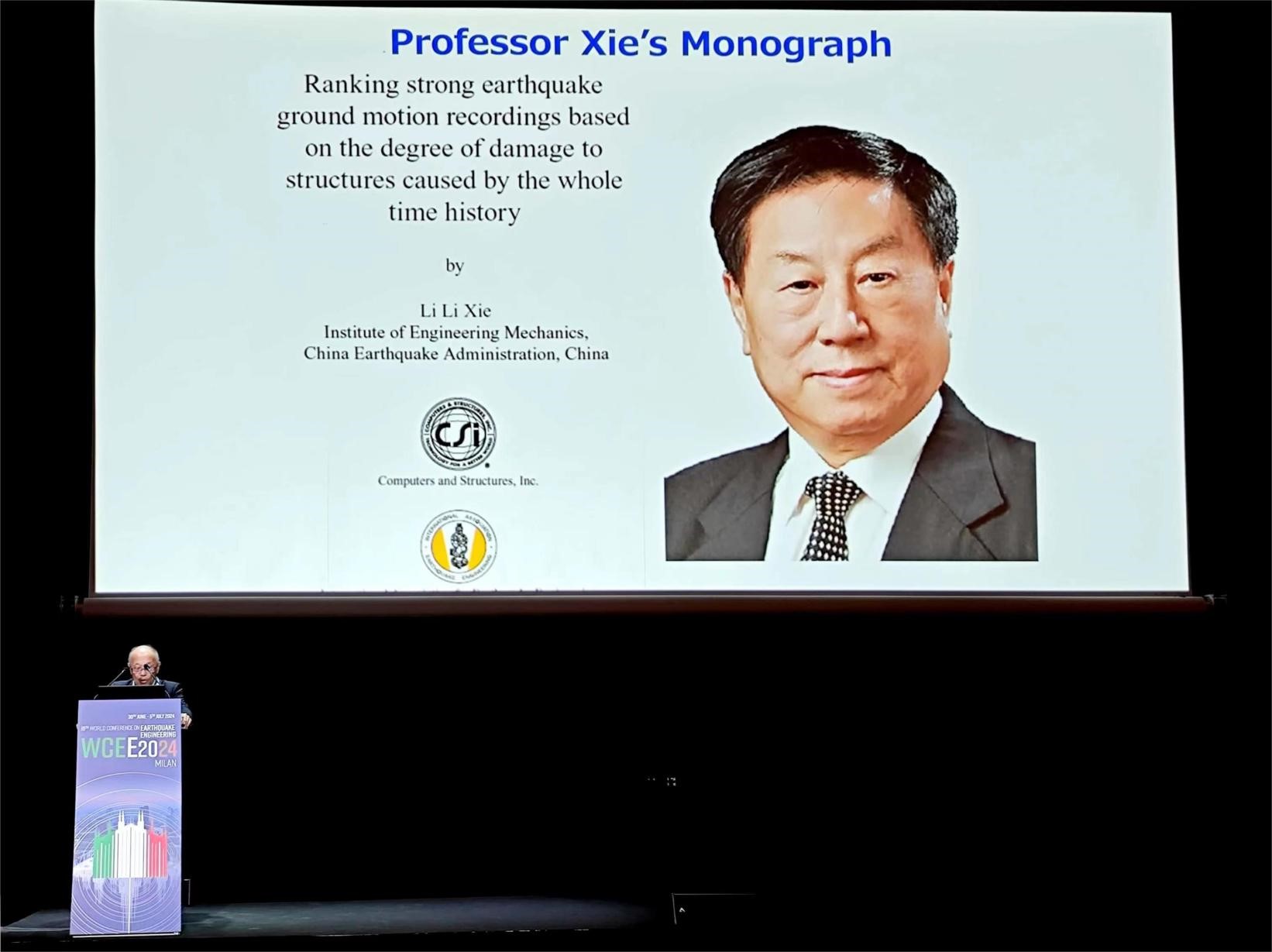 發(fā)布時(shí)間: 2024-07-05 點(diǎn)擊數(shù)量:93732024年6月30日—7月5日,第18屆世界地震工程大會(huì)(18th World Conference on Earthquake Engineering, 18WCEE)在意大利米蘭召開(kāi)。世界地震工程大會(huì)是地震工程領(lǐng)域的最重要且最具學(xué)術(shù)引領(lǐng)性的國(guó)際會(huì)議,由國(guó)際地震工程協(xié)會(huì)(IAEE)主辦,每四年召開(kāi)一次。中國(guó)工程院院士謝禮立教授被授予“IAEE地震工程大師”,并在18WCEE上作大師專題報(bào)告。2008年謝禮立曾被IAEE授予最高終身榮譽(yù)。